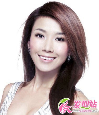 侧分的大片刘海帮你把一般的脸颊给修饰起来,长长的直发落在肩膀彰显柔美大气的感觉,大气的小v脸型很迷人哦。