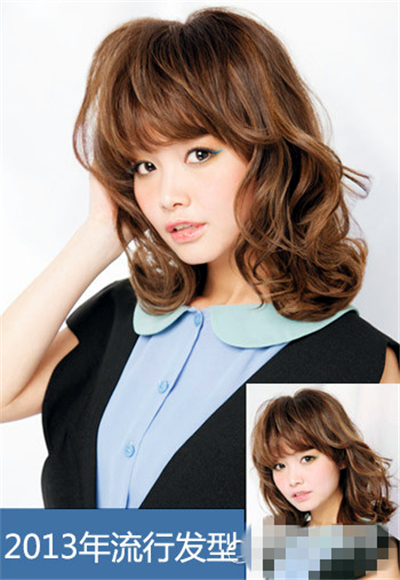 肤色白皙的MM不要错过这款长卷发发型哦,暗棕色长卷发最能凸显出你皮肤的优势,及眉的蓬松刘海修饰脸型,大饼脸瞬间成为精致小脸。