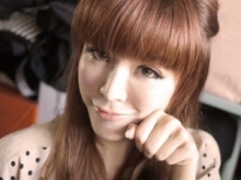 女生发量不多的短发梳向了前面,遮住了少许五官,彰显出浓浓的非主流气息,棕黄色的染发颜色时尚靓丽,将女生衬得潮流十足,浓浓的妆容在短发的衬托下,塑造出一个非主流风格的女生形象。