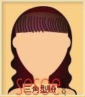 倒三角脸形的刘海由于脸形上圆下尖,上面无棱角,下面却又棱角突出。为了达到和谐,须对刘海进行特别处理,如斜分短刘海、圆弧形的对称刘海、层次感强的短刘海都是不错的选择。
