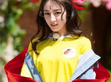 中分的长刘海贴近脸颊,沿着眼角摆动下来。并且自然的遮盖住了过宽的颧骨,顷刻间修饰成瓜子脸。在弧度不大的卷发中更显娇柔之感,令人不禁心生怜爱之心呢