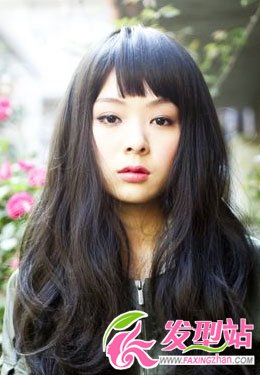齐刘海修剪得轻薄细碎,配搭丰盈质感的长卷发,塑造日系森女风格。齐刘海搭配蓬松的波浪卷发,发丝丰盈有弹性,犹如跃动的精灵,明显增加了秀发的质感魅力,散发独特气息。