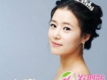 温婉小公主的一款俏丽新娘发型,中分的造型设计和时尚的棕红色染发,半扎发的公主头造型,在发饰下,更加唯美浪漫。