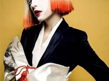 她的这款静谧蓝搭配荧光绿的发色很有未来感,充满科幻色彩的搭配,很有迷幻电音的感觉。