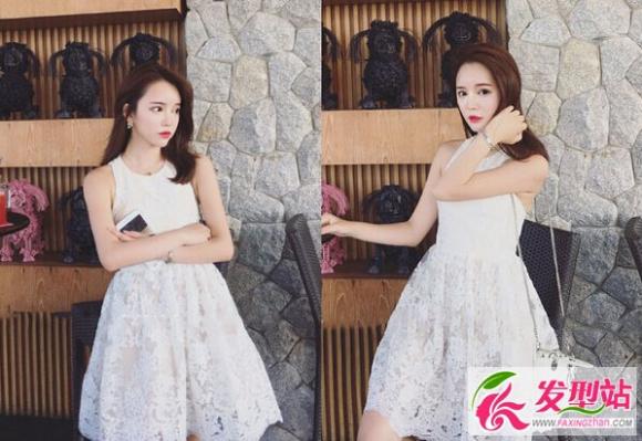 无论发型更换得多快,圆脸和中长发始终是标配。及肩中长发搭配时尚的亚麻发色,将甜美可人的感觉更升一层。最恰到好处的是,三七斜刘海的设计搭配着微卷的发尾的效果能修颜瘦脸,还能彰显气质。