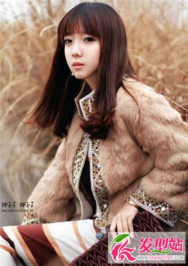 齐刘海造型是最甜美的减龄神器呢,柔顺飘逸的长发富有灵动美,而经过梨花卷烫设计的尾发,则增加了些许美感,齐刘海和梨花头的搭配很好的起到了修颜减龄的效果呢。