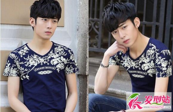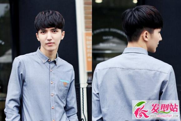 自然黑发乌黑亮丽,整齐化一的齐刘海让男生脸型更加立体。而经过定位烫的锅盖头为造型增加了不少分,并且彰显出男生的阳光气质。