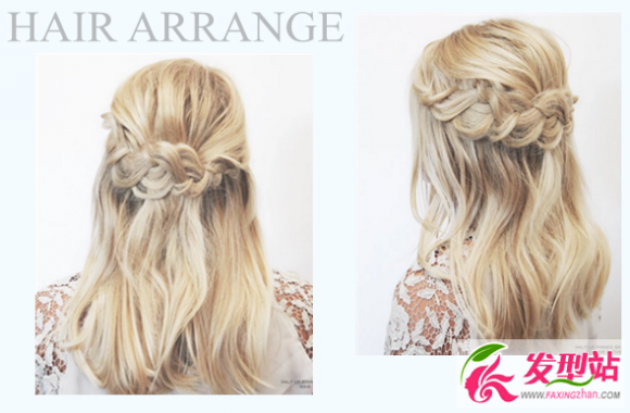 半扎发步骤 | 盘到发夹固定的半扎发上面,发尾藏进去即可