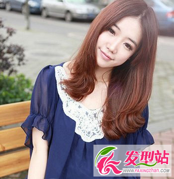 很是淑女大气的一款中分刘海的发型设计哦,披肩的长发,在发梢上做一个微微外翻的设计手法,一头棕红色的发色,修颜又减龄,时尚又大气。