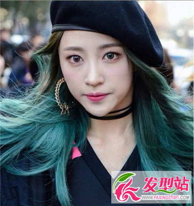深褐色的发色在发丝的根部,孔雀蓝绿色在发梢,如此的时尚潮酷,在带上一顶帽子,你想要双色的染发还是单色的染发,随你挑选。