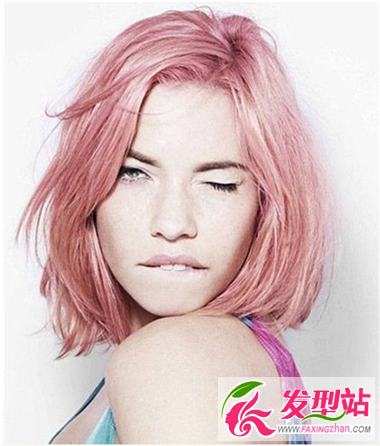 玫瑰粉金色,是不是很多女孩子都喜欢呢,染与发色上,是不是有别有一番味道呢,搭配上三七分刘海和披肩短发,出尘脱俗,妩媚灵动。