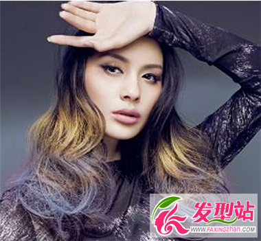 中分披肩卷发中,黑色做主色,在渲染上金色和蓝灰色,不光有很好的修颜靓肤效果,也会将前卫妩媚展现的淋漓尽致。