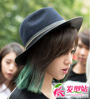 棕色额度发色和绿色来一个上下挑染的设计,融入在披肩短发中,仿佛一个低调的小精灵一般,充满了清纯活力的气息。