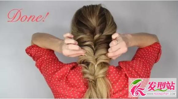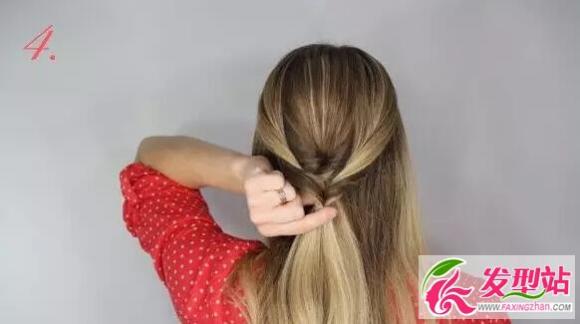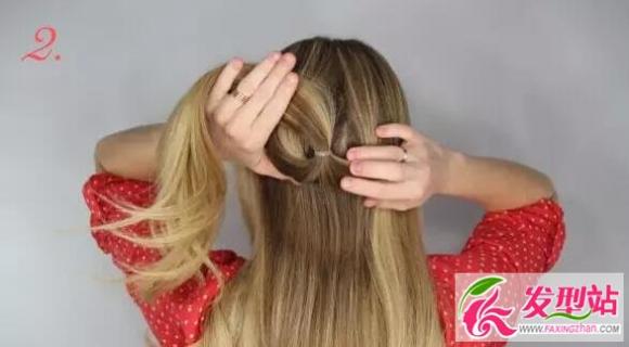 步骤二:在马尾中间找开个位置,将马尾发塞进去,旋转几圈。