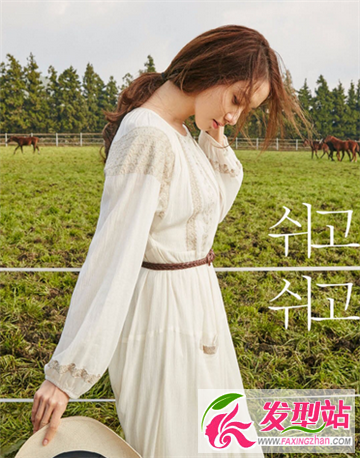 黄棕色的一款染发发型,很受森女系MM的情有独钟,偏分的长刘海随风飘逸,搭配低扎的马尾与靓肤的发色,勾勒出女生无与伦比的气质感,浪漫唯美。