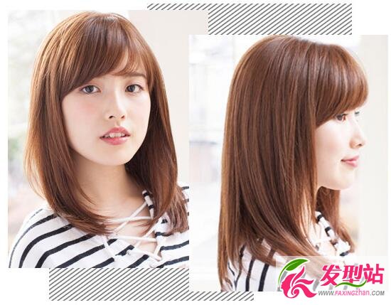 中长直发造型,发尾多层修剪让造型轻薄一些,在加上内扣的刘海看起来甜美到不行,棕色染发让造型的时髦度提升好几个度,无论什么时候都不会out。