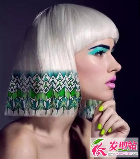 高冷个性的奶奶白发色为底,绿色系的花布染发图案为辅,使得沙宣波波头更像是丝绸一般,又像是行走的画。