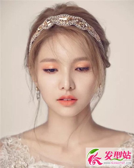 走韩范路线的女生,这款风格的盘发非常百搭,碎发长刘海,显瘦且凹出甜美感。