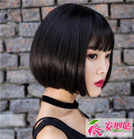 复古黑短发造型,首先介绍的是范冰冰的时尚短发款式,一刀切的齐刘海,两边对称的齐腮短发,整整齐齐的口字短发造型,红唇搭配,整款造型时尚复古。