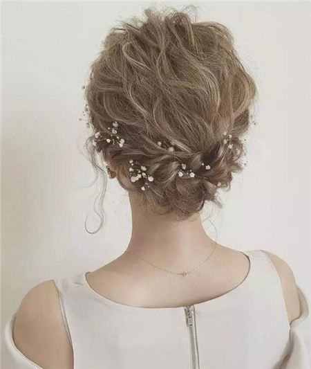 当看到别人的造型如此美好,自己也会想象着自己结婚当天弄什么发型好看,亚麻色系点缀满满天星花朵,弥漫的芳香,那是幸福的味道。