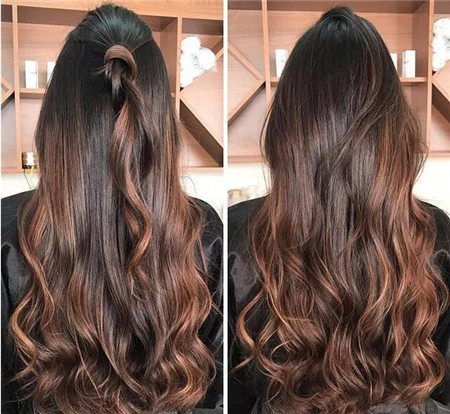 深棕色,成熟女人的颜色。发色中也有着一点点的小亮光,低调优雅。