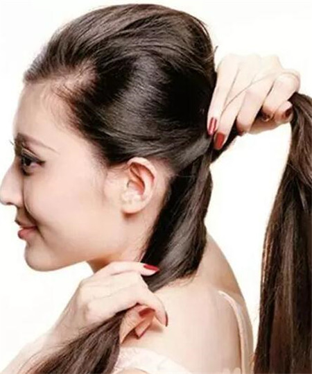 梳理好头发,并将头发分成上下两份,上:下分量为1:3.