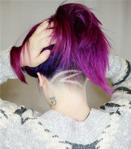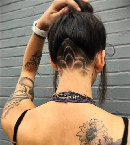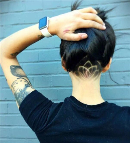 推后边发型,就是将后脑的头发推掉。雕刻,即在推掉的部分,雕刻上图案。女生推后边的发型设计,是最新时髦流行的款式。