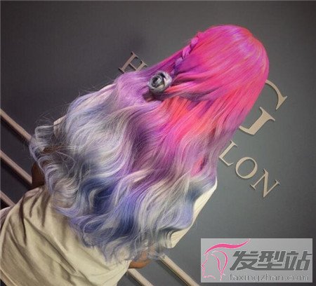 或许有些妹纸觉得编发对自己来说,真的是一件难事。那么选择两股发半扎马尾的设计,发尾浪漫紫的搭配,梦幻神秘。