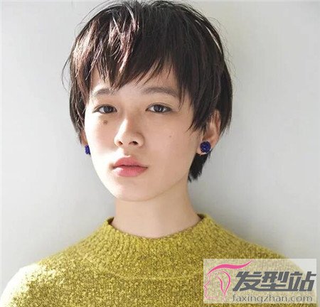 精灵短发,一款流行的短发款式。耳边的棱角碎发要多些,修饰棱角,结合刘海,将方脸衬得精致。