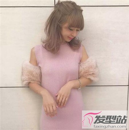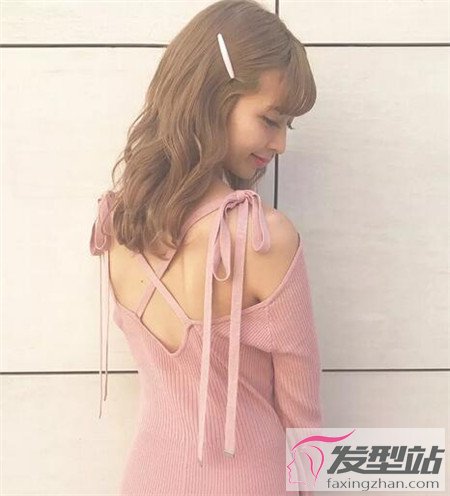 将齐肩的烫卷发半扎起来,一样有着让人意想不到的温柔和甜美,适合各类型的脸型。