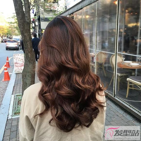 茶色的染发看起来比较冷,暗色调接近黑色所以比较显肤白,层次剪得大波浪会比较轻盈,不会感觉厚重,搭配了空气刘海显得人更加少女可爱,适合酷酷又带点性感的妹子,很撩人。