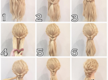 步骤三 交叉左右两边的刘海,使其重合成一股头发,再用发夹如图所示固定住,接着把汇合到一起的头发编成麻花辫。
