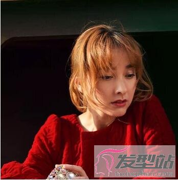 干练自然的短发经过蜜糖色的染烫之后,尽显小清新范。空气刘海的齐眉设计,反而使眼睛看起来更为清澈,五官看起来更小巧玲珑。