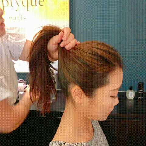 最后,千万别忘了把头顶的发丝局部拉松,并且从发际线边缘抓出一点胎毛,除了创造逆龄感,又能小脸,同时也让花苞头造型更有空气感的线条!