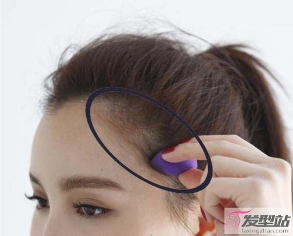 使用气垫型化妆海棉,沾取和发色相近之产品,轻轻地填补在发际线和鬓角空隙,记得要少量多次才不会显得太过突兀。