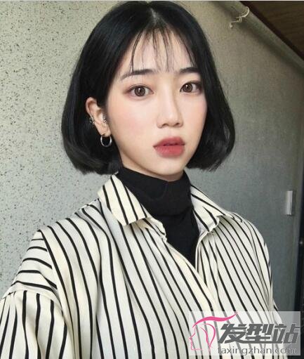 不喜欢染发的女生,可以尝试黑色齐脸短发,同样能提升肌肤的白皙度。发尾打造出内扣的形式,搭配轻盈的空气刘海,十分减龄。
