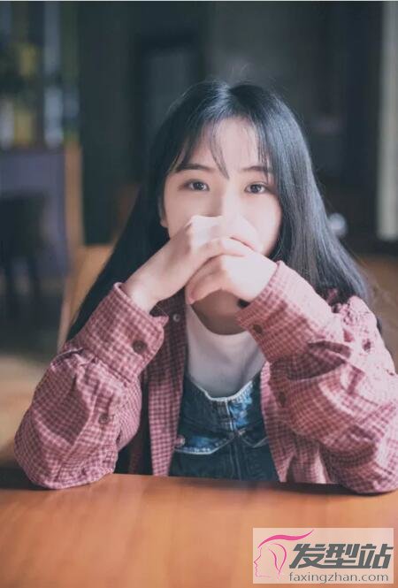 分刘海的长直发是最考验气质的一款发型,一头浓密的黑色长直发有着最自然最美好的气息,不加以任何装饰,简单而自然。