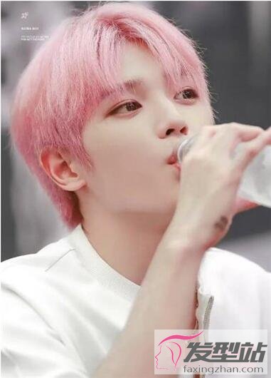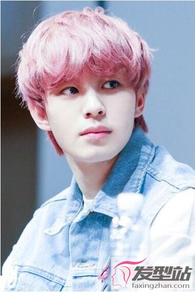 樱桃粉色的染发就是显白,男生的肌肤在其衬托下,非常白皙细腻。头发修剪出很细碎的层次感,丝丝分明的感觉晶莹剔透,刘海向两侧梳理,是可爱的小暖男。