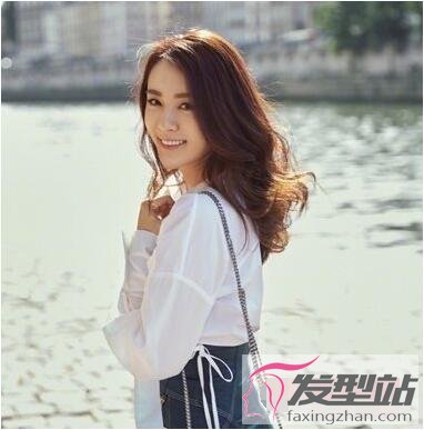 同样是一款非常轻盈的卷发发型,将发尾烫出略带凌乱感的微卷,染成奶茶棕,在阳光照耀下头发熠熠发光,任其自然披散于身后,衬托得女生的脸型愈发小巧,甜美的笑容极具魅力。