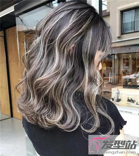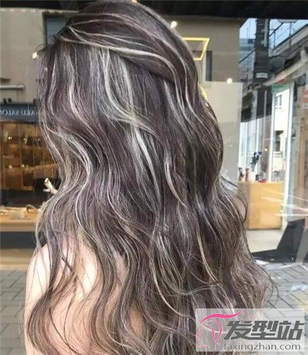 很好看的一款长发染发发型,显老的黑色系发色多了银白色的点缀,立即变得十分的优雅清新。