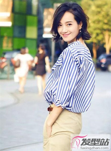仍然是一款特别轻盈的短发,带有几分凌乱感,发尾的自然交错增添了动感味道。偏分的设计使得头发半遮住脸颊,穿上衬衫,回眸一笑散发出成熟女人的妩媚和知性。