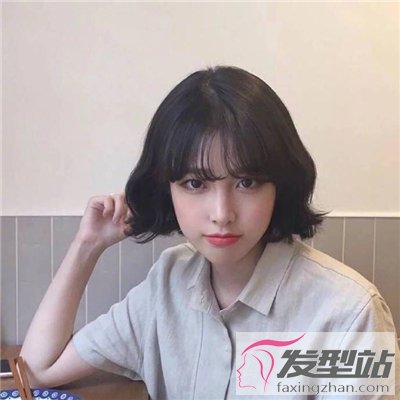 这款齐颌短发走的是欧美路线,发尾烫出蓬松的造型,很能凸显发量又不会觉得沉重,女生的脸型比较方正,刘海稍显厚重,整体发型的修颜效果显著。
