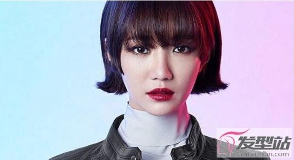 她的发型概括起来就是七个字“锁骨发+八字刘海”这两个就是将辛芷蕾打造成高级脸的重要因素,我们来一一分析。