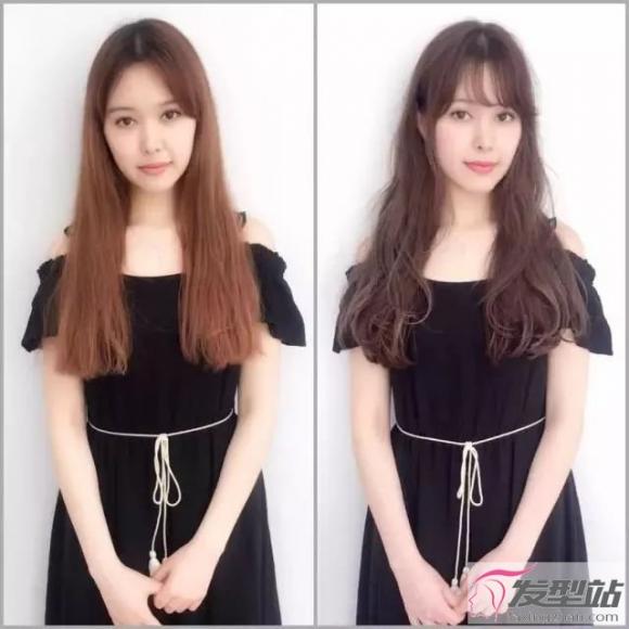 另外,圆脸的同学可以适当来点卷度。差不多的发型作对比,直发太过服帖会突出脸部轮廓。