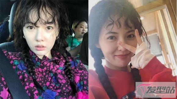 羊角辫也是韩妞流行起来的发型,太妍就常常绑上羊角辫,而原本蓬蓬的洋毛卷再绑上羊角辫,就像洋娃娃一样超级可爱!可以像泫雅、雪莉一样把原本的空气刘海变成羊毛卷,或是像太妍一样弄成中分八字刘海,都非常可爱!