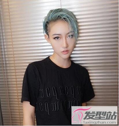 逗号刘海的设计凸显出女生与众不同的个性,染成浅蓝色更加吸睛。