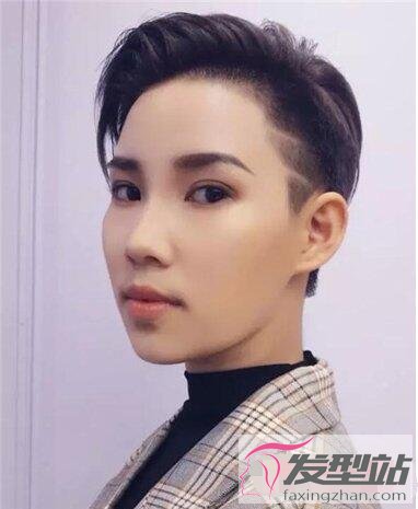 乍看就很霸气的短发,鬓角处的头发剃得很短碎,搭配刻痕设计富有个性。