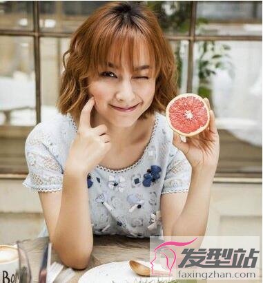 头发烫卷后,提升了时尚度,搭配轻薄的刘海和俏皮表情,使长脸女生更可爱。