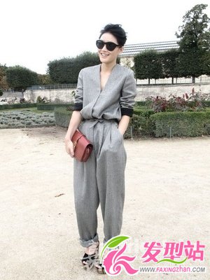 4. 黑色的短发不再是服帖的,而是被抓成比较凌乱的效果,从视觉上将脸型拉长,搭配干练的OL套装和墨镜,将女性的气场发挥到了极致。
