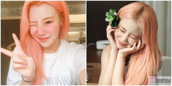 说到这一款发色,最具代表的大概就是韩团MOMOLAND的JOOE了,在团体中、JOOE的发色向来都是显眼又特别的色调,是很多女孩染发的指标~可以看到这类似杏桃果子露的发色虽然很醒目,但能将肤色映衬得相当雪白,而且含别有一番春夏气息,将金、棕、橘粉的颜色比重稍微调整,更能呈现不同质感喔!